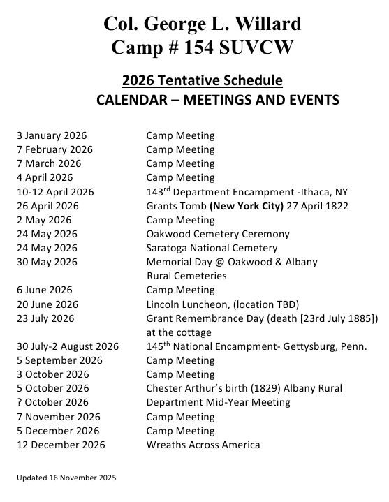 Brothers, if you are interested in attending/marching in any events OR if you have any events you wish your Camp to attend, please contact the Commander or Secretary/Treasurer.
