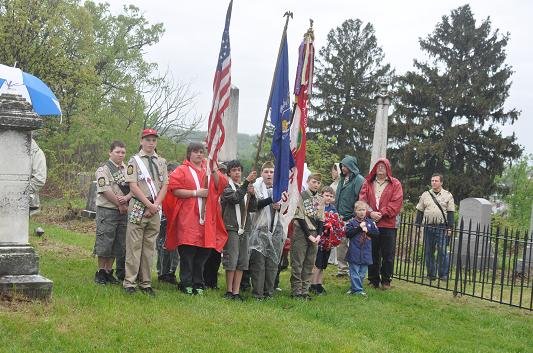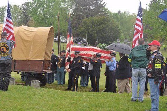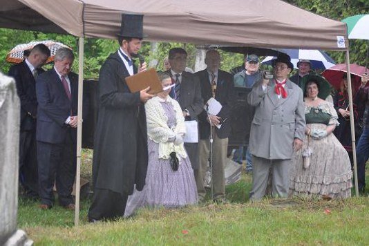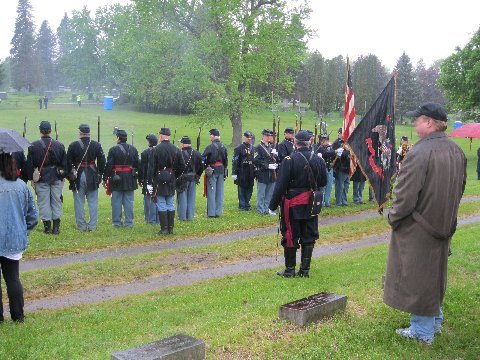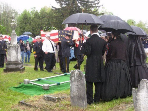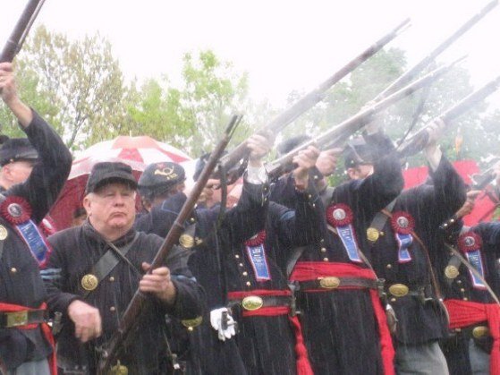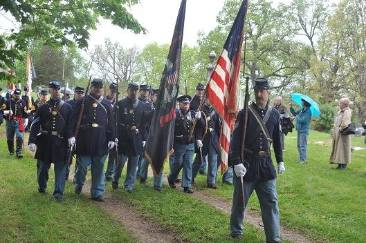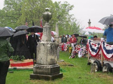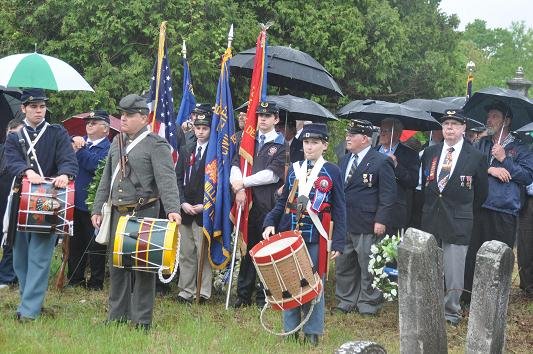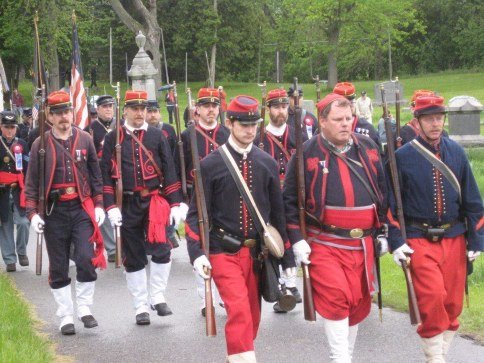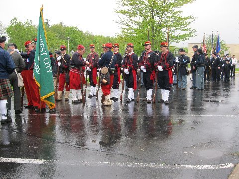 On May 15, 2011 in honor of Ellsworth’s sacrifice, and after a year-and-a-half of planning by the Dept. of New York and several months of fine-tuning with the help of the Col George L. Willard Camp #154, this Signature Sesquicentennial Event successfully was held in the Hudson View Cemetery in Mechanicville New York. The weather was like the day of Col. Ellsworth’s funeral on May 24, 1861, rain dogged the attendees but none were daunted by the weather. An estimated crowd of over 500 people attended in addition to Gold Star Mothers, veteran’s groups, reenactors that included a number of Zouaves (Rockford Grays, Salem Zouaves, 5th NY Duryeas Zouaves, 14th Brooklyn), and several Sons of Union Veterans Camps including to name a few Willard, Worden, Sydney, and Tanner Camps as well as other reps from other Depts.